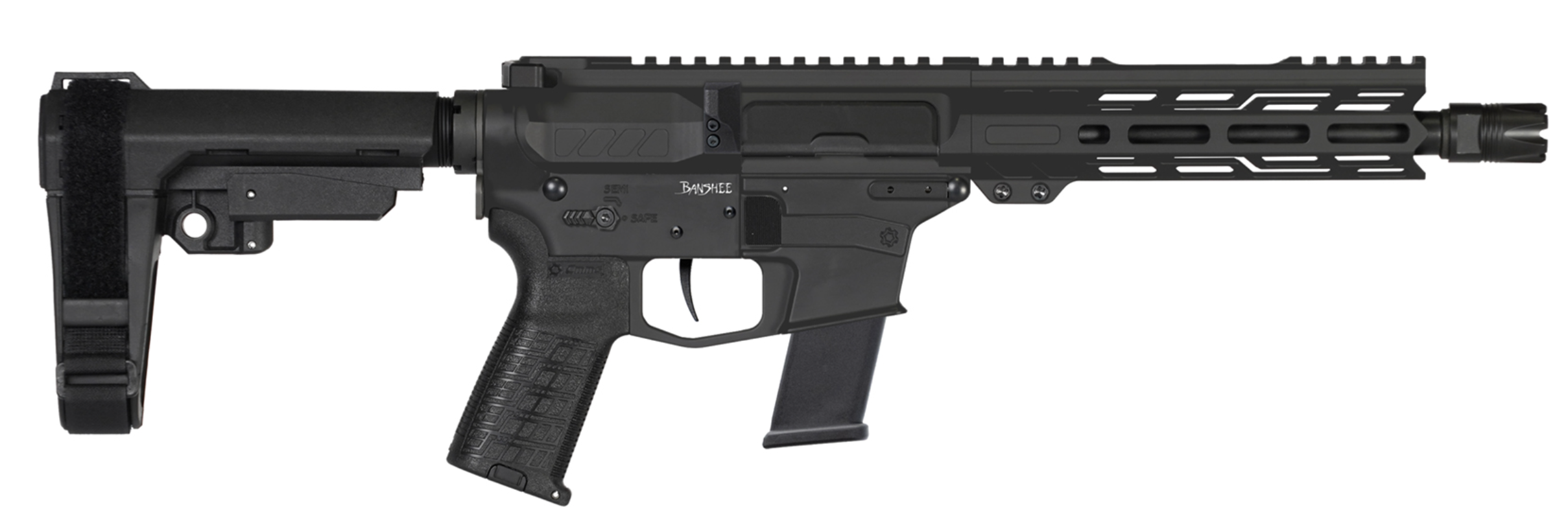 CMMG PISTOL, BANSHEE, FIXED EJECTOR, 9MM, 8″, ARMOR BLK W/ADJ RIP BRACE