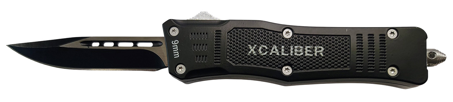 Xcaliber Knife Company 9mm Large 3.80″ OTF Drop Point Black 440C SS Blade, 5.30″ Steel Handle
