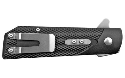 If you are a big fan of the 1911 semi auto pistol, you might also enjoy carrying this light handy 1911 liner lock folder as an everyday side kick! Designed to emulate the 1911’s iconic grip frame, its lightning quick to draw and open thanks to its integral flipper and once deployed its super sharp, clip point blade can be made extra safe by engaging its patented secondary safety mechanism. Supplied with a classically checkered Griv Ex handle and ambidextrous stainless steel pocket clip its very reasonably priced and sure to be your new favorite 1911!