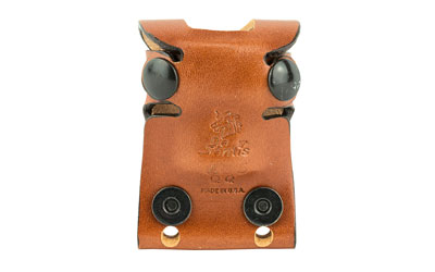 This design divides the speed-loader in half over the belt, reducing much of the bulk and offering maximum concealment. The speed-loader will not fall out when the cover flap is unsnapped. The Second Six(TM) also features a unique belt-adjustment system that allows the carrier to fit snugly on any belt up to 1 3/4″ wide. Available in black or tan unlined leather. Fits HKS and similar size speed-loaders.