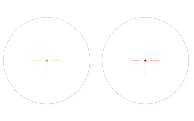 Built on True Strength Platform to Offer Durability and Precision Adjustment; Completely Sealed, Shockproof, Fogproof and Rainproof. Intuitive Quick to Acquire Red/Green T-Dot Reticle for Swift Execution of T-Zone and Center Mass Hits with Fine Adjustment Rheostat for Variable Intensity Adjustment. Great Field of View, Unlimited Eye Relief, and Featuring a Non-reflective Emerald Coated Lens. Optimal Height to Co-witness with Iron Sights Using Included Riser Adaptor. Offset and Center Height Adjustable, Easily Adapts to Both the Shooter and Firearm. Aids in Intuitively Acquiring Targets, Enhancing Shooting Accuracy, Speed, and Overall Performance. Versatile Towards for a Wide Variety of Different Firearms Applications. Complete with Flip-open Lens Caps and Picatinny Quick Detach Lever Lock Mounting Base