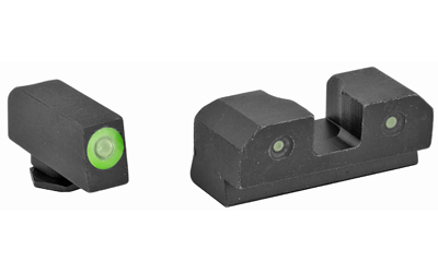 XS R3D Night Sights feature a traditional 3-dot tritium, notch and post sight picture. The blacked-out rear increases contrast against the front sight. The front sight is available in orange or green and is equipped with Ember(R) Glow Dot Technology. Ember absorbs ambient light and glows in low light. The front tritium lamp charges the Ember dot making the front sight glow brighter than the rear at all times, keeping focus downrange. R3D sights are the brightest notch and post option for fast and accurate shooting in bright and low light.